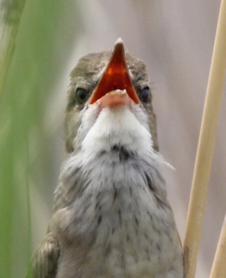 | ・「コヨシキリ」は二回りほど小さく、口の中は黄色い。 |