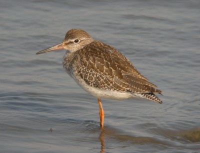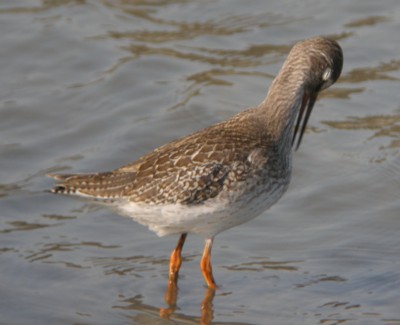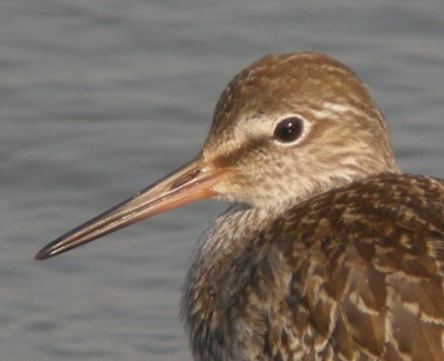 この個体は、脚の赤味が弱く「ツルシギ」の冬羽に良く似てる。本種の嘴は太くて短いこと、上・下嘴の基部に赤味があることから判断しました。