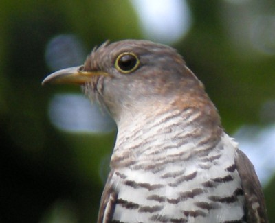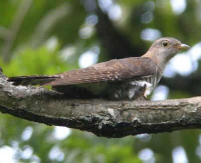 「ホトトギス」「ツツドリ」「カッコウ」の3種、腹部の黒い横斑で判断するには余程鮮明な写真が撮れないと無理だろう。鳴声(さえずり)を聞けば簡単に解るが、声は聞けても見つけるのは難しい。
