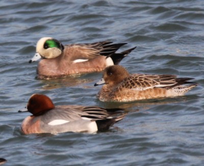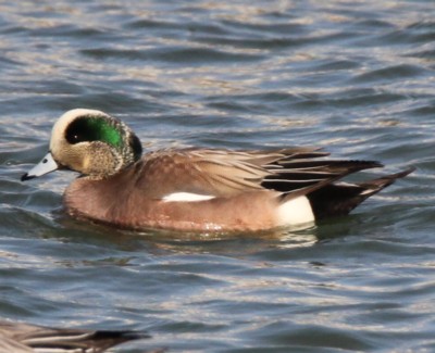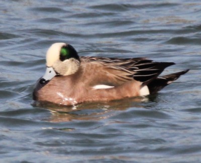 写真は雄だけです。嘴の基部が黒いことが「ヒドリガモ」との識別点ですが、雌は見つけられませんでした。単独で渡来したようです。