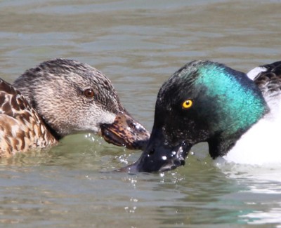 この嘴を見れば雌でも他のカモ類と間違える事はないでしょう。本種の雄はエクリプス後に更に体の一部を換羽させ、繁殖羽に移行中のような段階があり、それをサブエクリプスと言うそうです。