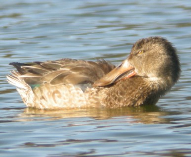 | ・雌は、全体に褐色で「マガモ」の雌に似ている。嘴は黒味を帯びた黄色、雄と同じように幅が広くて大きい。虹彩は茶色。 |