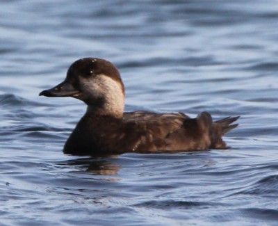 | ・雌は、頭部からの上面は黒褐色、体下面は淡色。頬から前頸にかけて白色〜汚白色。嘴は黒色で、雄のようなふくらみはない。 |