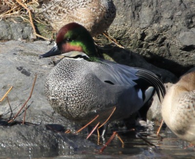 | ・雄の頭部がナポレオンの帽子のような特徴のある形をした中形のカモ。 |