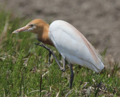 ・「コサギ」より一回り小さく、他のシラサギ類より乾いた草地を好む。