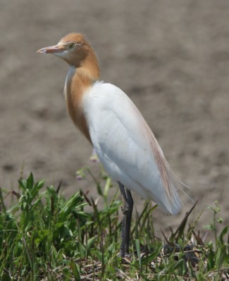 | ・雌雄同色。夏羽では、頭から胸、背が橙色になる。嘴は黄色で、シラサギ類の中で最も短い。足は黒っぽい緑褐色。 |