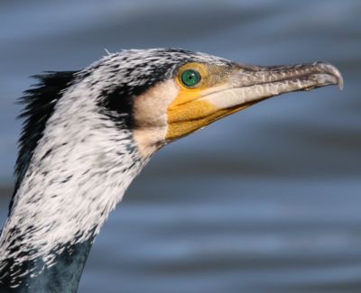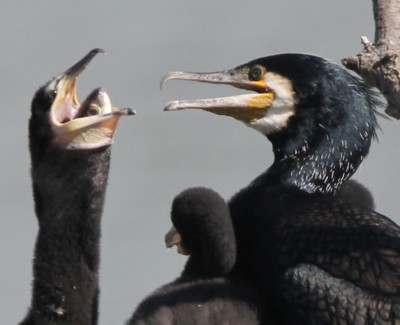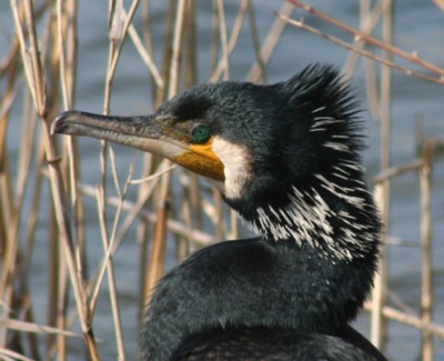 | ・良く似た「ウミウ」は、嘴の基部、黄色い部分(口角)が尖る。 |