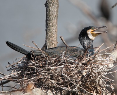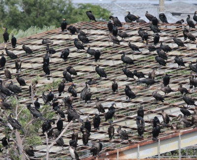 近くの公園の池や河川など、どこでも見られる。樹上にコロニーを作って繁殖し、周り一面を糞だらけにする困った奴ら。
