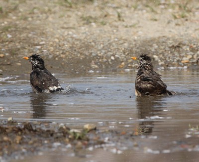 | ・喉から胸は黒灰色で、頸側、胸側、腹は淡い灰褐色。腰は白い。嘴は橙色。足は黄橙色。 |