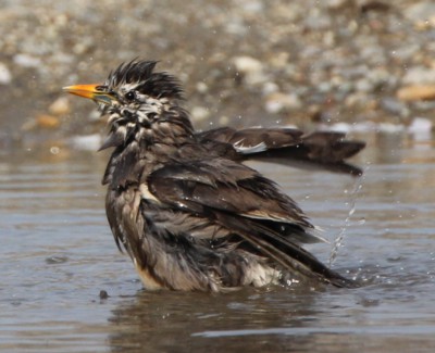 | ・「ヒヨドリ」より一回りくらい小さく、黒っぽい体に橙色の嘴がよく目立つ。 |