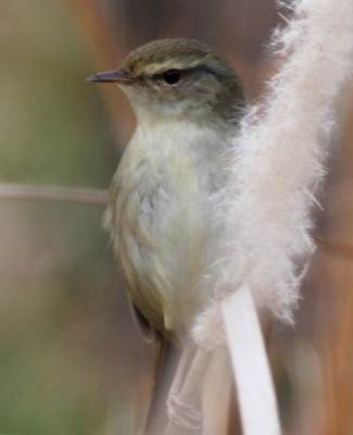 | ・雌雄同色。頭からの上面は灰色味のある黄緑色。眉斑と耳羽は汚白色。過眼線は黒褐色。 |