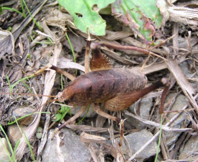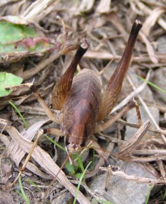 ・光沢のない茶褐色をしたカマドウマの仲間。林に生息する。