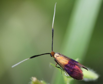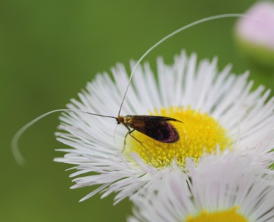 ・触角が長い「ヒゲナガガ科」の一種。雄の触覚は長く、雌は短い