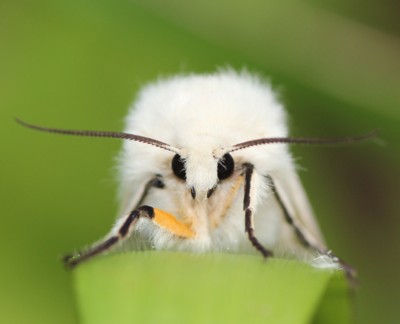 類似種の「アカハラゴマダラヒトリ(Spilosoma punctaria)」は、翅の地色は純白、腹部背面と前脚の腿節は赤色をしている。 |