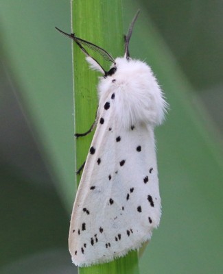 | ・白色の翅に黒色の斑紋のあるヒトリガの仲間。 |