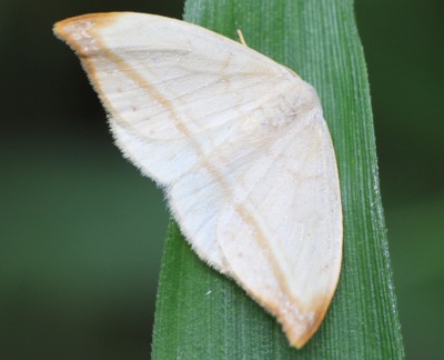 前翅の中央付近に暗褐色の斑紋があるものを「ギンモンカギバ(Callidrepena patrana)」と言うのですが、本種にも有紋形と無紋形があるそうです。 |