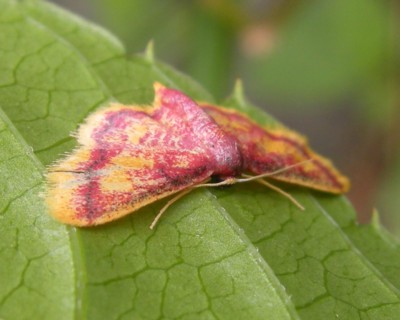 黄色地に赤 ? 赤地に黄色 ? どちらの表現が正しいのかは解らないが、翅の中央の黄色部の広さは個体によって違うようです。綺麗な色をしているが、小さ過ぎて目立たない。 |