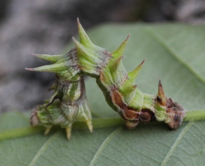 | ・体色は黄緑色〜茶褐色まで個体により様々で、腹部背面に棘状の突起がある。 |