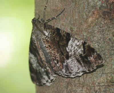 「ヒロオビオオエダシャク」に良く似ていて、迷いに迷いました。本種は後翅の外縁には白い条があること、また一回りほど小さいことで見分けられるそうです。完全に後翅が見える写真がないので大きさ的に判断しましたが、若干、不安・・・4つ星です。 |