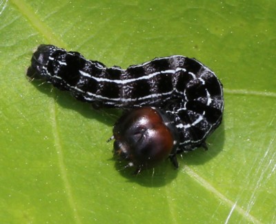 終齢幼虫では、頭部の色が赤褐色になるそうです。