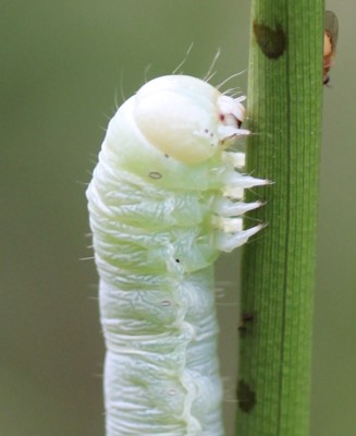 | ・頭部は乳白色、体は淡緑白色で細かい横線が多数ある。 |