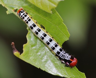 成虫の写真はありません。幼虫は「アカバキリガ(Orthosia carnipennis)」と良く似ているみたいですが、本種のほうが鮮やかで綺麗な色をしています。 |