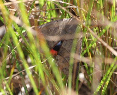 枯れ葉のような物が草むらに落ちたと思ったら・・・何とか見つけて、数枚撮る事が出来ましたが、直ぐに逃げられてしまいました。残念。 |
