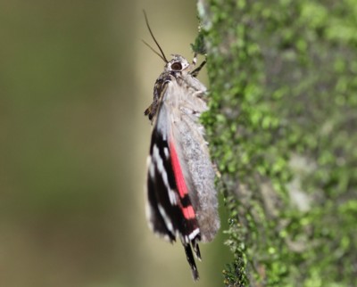 前翅を見ただけでは、敬遠しがちな我・・・ちらっと見えた後翅の朱色、意外にも綺麗です。 |