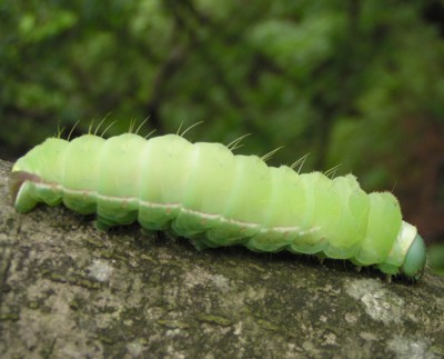 | ・若齢幼虫の頭部は褐色〜淡褐色、体は黄緑色。 |