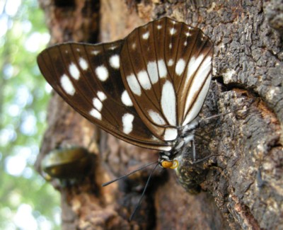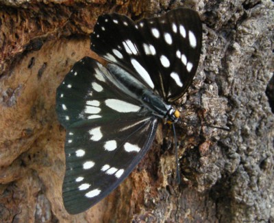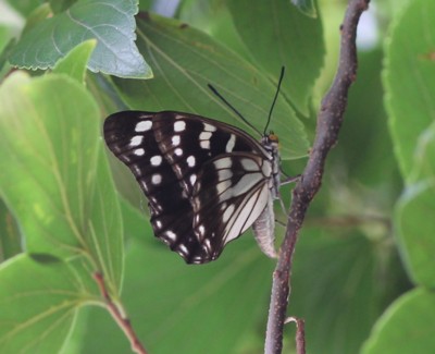 ・黒褐色の地に白色の斑紋があるタテハチョウの仲間。