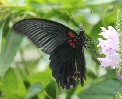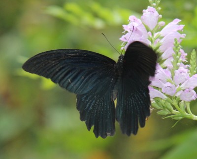 | ・雄の翅は全体に黒色、翅裏の基部に赤色斑がある。 |