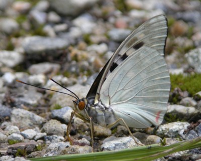 | ・翅裏は淡黄色〜銀白色。表裏ともに後翅の肛角部に赤色斑がある。 |
