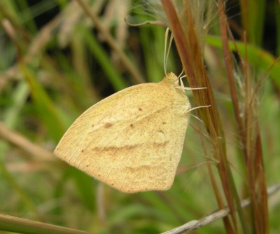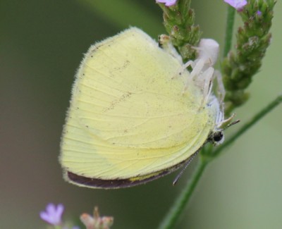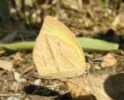 2011年8月---夏型の写真を追加。「キタキチョウ」との判別に迷いましたが、わずかに並行した2本の黒条が見える事から判断しました。 |