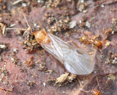 ・体は黄褐色〜赤褐色。兵アリの頭部が大きいのが特徴。