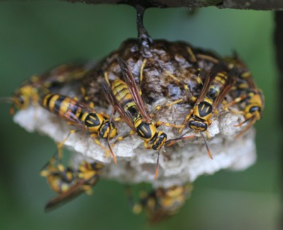 ・体は黒色で、鮮やかな黄色い斑紋のあるアシナガバチ。