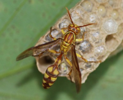 ・全体に淡黄色で、暗褐色の斑紋があるアシナガバチ。