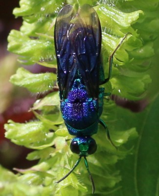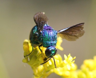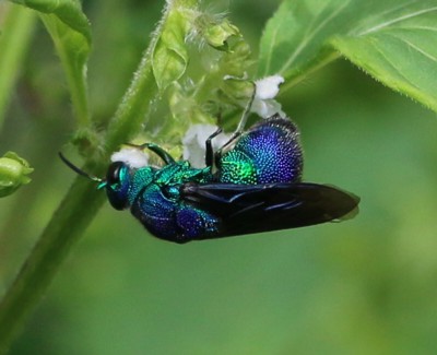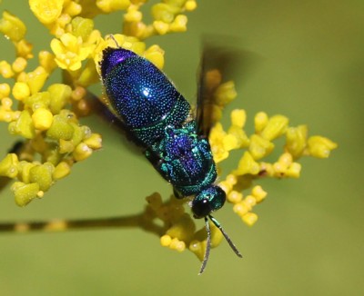 | ・全体に金青緑色をした美しいハチ。青い蜂と書いて「セイボウ(青蜂)」と読む。 |