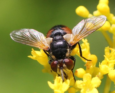 | ◎別名/「マルボシハナアブ」「マルボシヒラタヤドリバエ」 |