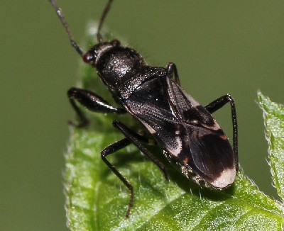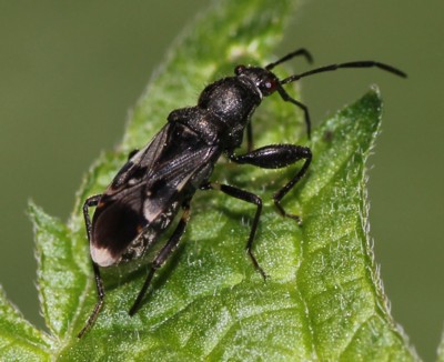 ・ヒョウタンの形をしたナガカメムシの仲間。黒色で光沢があり、全身に長い毛が生えている。