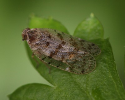 ・半透明の翅に褐色の斑紋があるヒシウンカの仲間。