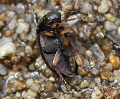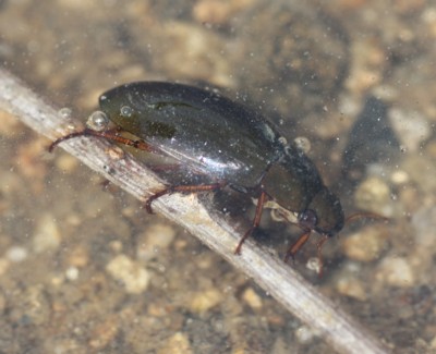「ヒメガムシ」より明らかに大きく、最初は「ガムシ(Hydrophilus acuminatus)」だと思ったが・・・ガムシは35mm前後ともっと大きい。ガムシの仲間は2種目。 |