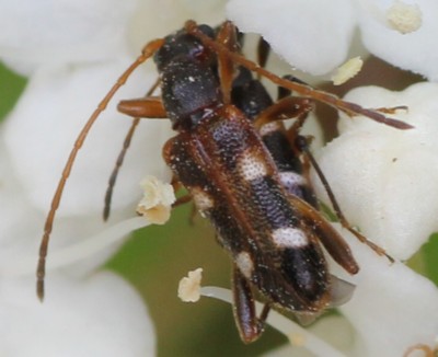 ・花に集まる小型のハナカミキリムシの仲間。