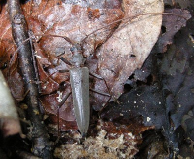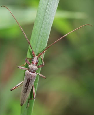 本種は「カミキリムシ科」ではなく、「ホソカミキリムシ科」と言う独立した科です。触角の生える場所が他のカミキリムシと違うそうです。スライドショーでは大きい画像が見れますからどうぞ見て下さい。 |