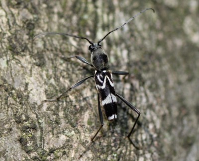 ・山地の花上や薪材で良く見られる、細長いカミキリムシ。