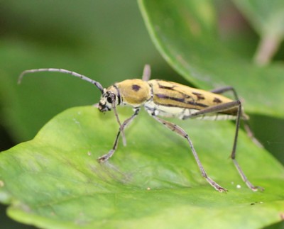 ・淡い黄色に黒い斑紋のあるカミキリムシ