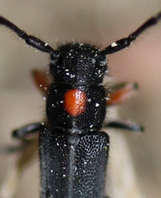 | ・上面は全体に黒色で、前胸背板の中央に赤色の斑紋がある。 |