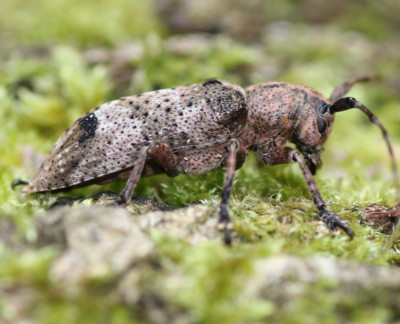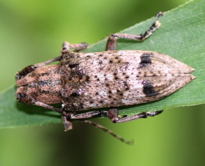 横から数枚撮っただけで逃げられてしまった。上翅の斑紋が良く解らないが、多分間違ってないだろう。名前にあるシロオビはあまり目立たず、個体によって違いが大きいようです。 同じ仲間「アトジロサビカミキリ」「アトモンサビカミキリ」「ナカジロサビカミキリ」「ワモンサビカミキリ」など。
