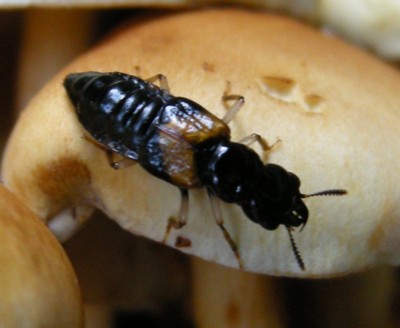 「アカバオオキバハネカクシ(Oxyporus maculiventris)」との判断に迷った。オオキバ(大きい牙)を持った種は十数種あるようだが、その中では頭が大きい事からオオズ(大頭)と言うのだろう。