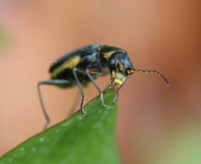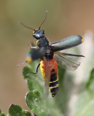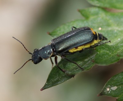 ぱっと見、ハムシの仲間かと思ったが、ファインダーを覗いたら何か違う・・・ジョウカイモドキ科は初見。しかし、色んな科があるものだ・・・この科は日本では60種余りの記録があるらしい。 |