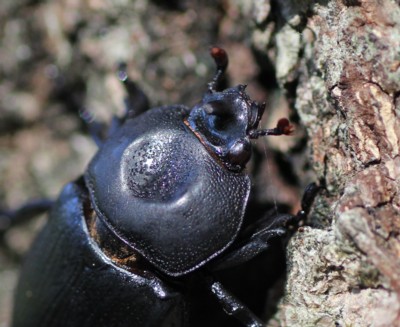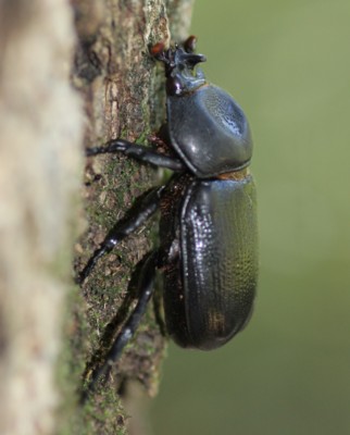 初めて見た時は、角も目立たずにカブトムシの仲間だとは思いませんでした。雌の角は、より小さく、前胸背の凹みは幅が狭くて縦長だそうです。